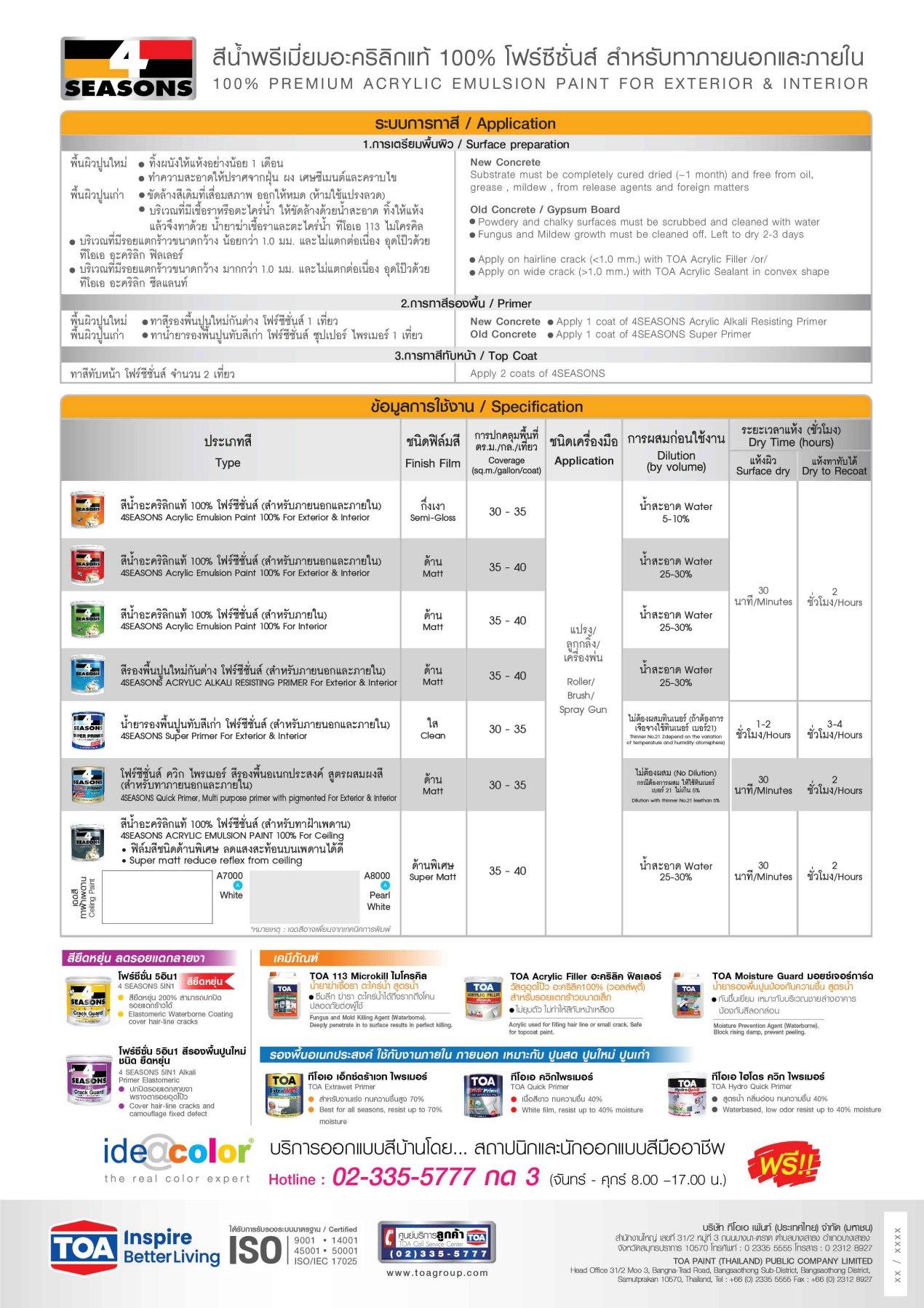 TOA สีรองพื้นปูนใหม่กันด่าง #A1111 4 SEASONS (1กล)