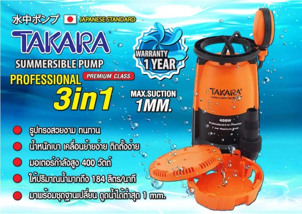 TAKARA ปั๊มจุ่มแช่พลาสติก 3in1 Pro-Suction(ลูกลอย)400W 1 1-1/4