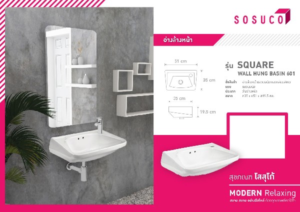 SOSUCO อ่างล้างหน้าแขวน ทรงเหลี่ยม G BASIN 601 S53001