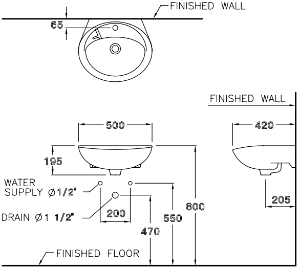 HAFELE อ่างล้างหน้าแขวนผนัง สีขาว 530MM 495.60.985