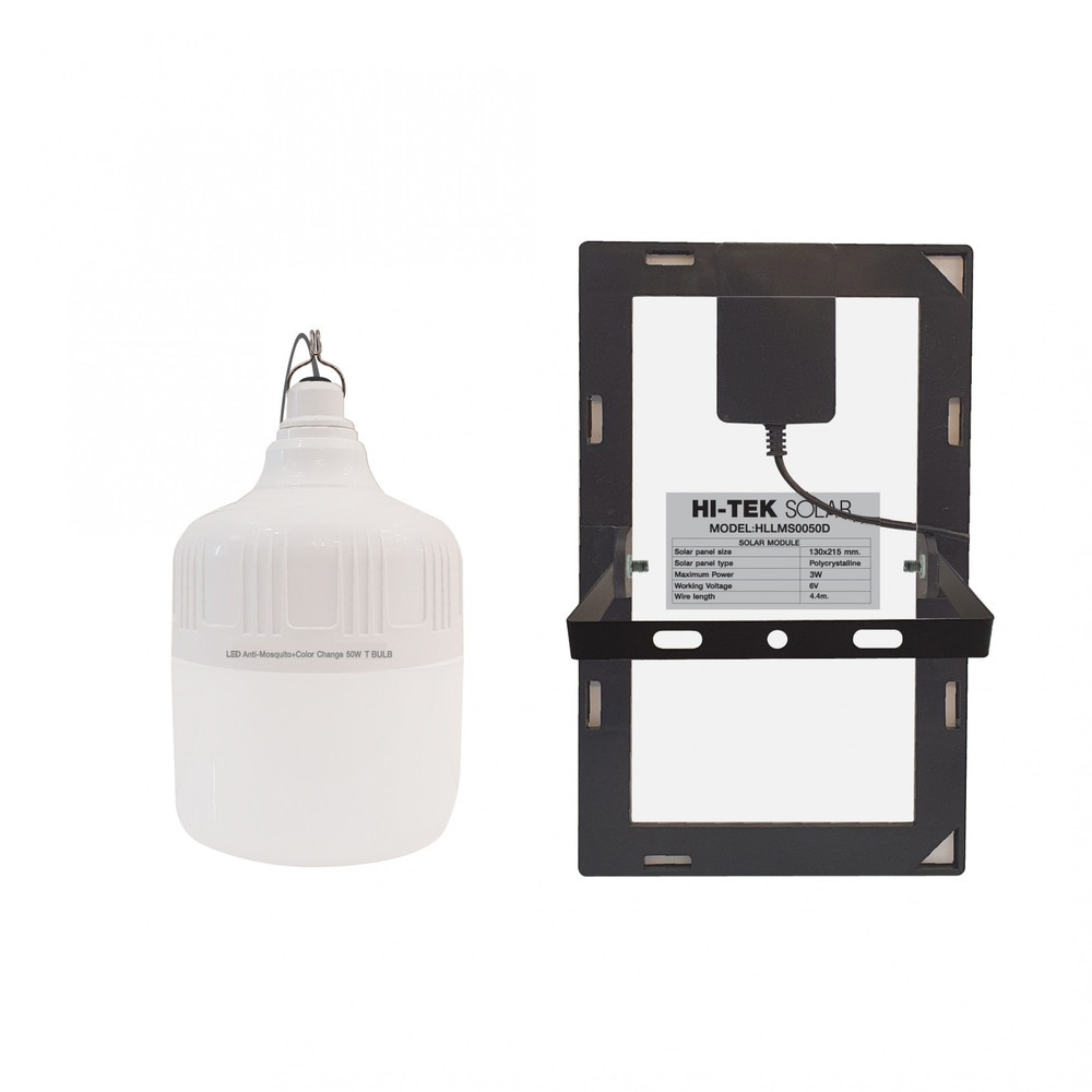 HI-TEK ชุดหลอดไฟ LED โซล่าเซลล์ 50W +แผงโซล่าเซลล์+รีโมท ไล่ยุง แสงขาว