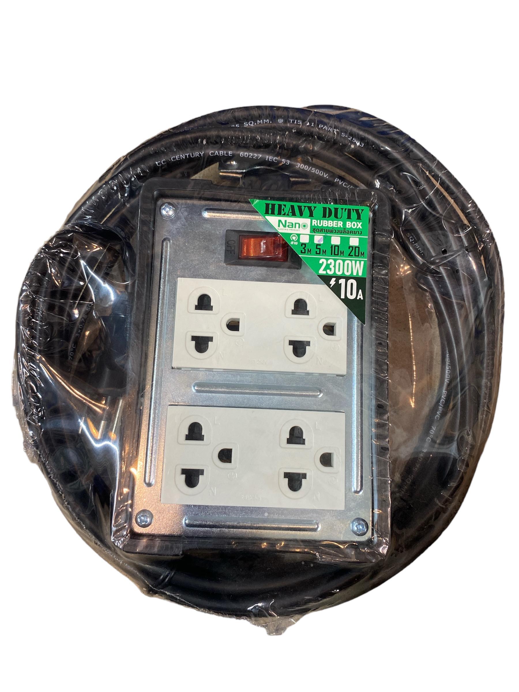 Nano บล๊อคยาง+เต้ารับ+เมนสวิทซ์+สายไฟ 10M. RB10HS4-10M 4ช่อง 10A.250V.(12/ลัง)